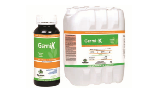 Germi-K es un nutriente foliar líquido con alta concentración de potasio combinado con L-aminoácidos y fósforo asimilable.