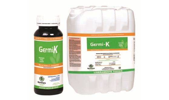Germi-K es un nutriente foliar líquido con alta concentración de potasio combinado con L-aminoácidos y fósforo asimilable.